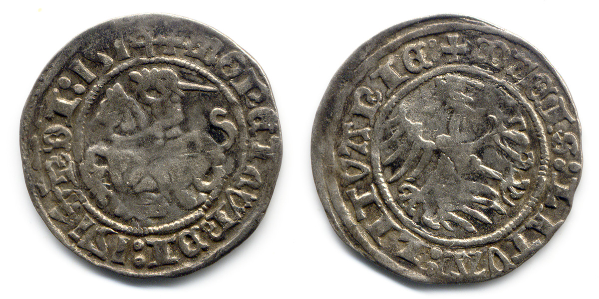 Lithuania. Polgrosz 1511. Zygmunt I Stary. Wilno. Kop. 3134, HB H39J1-VII. Silver 1,09 g. Patina