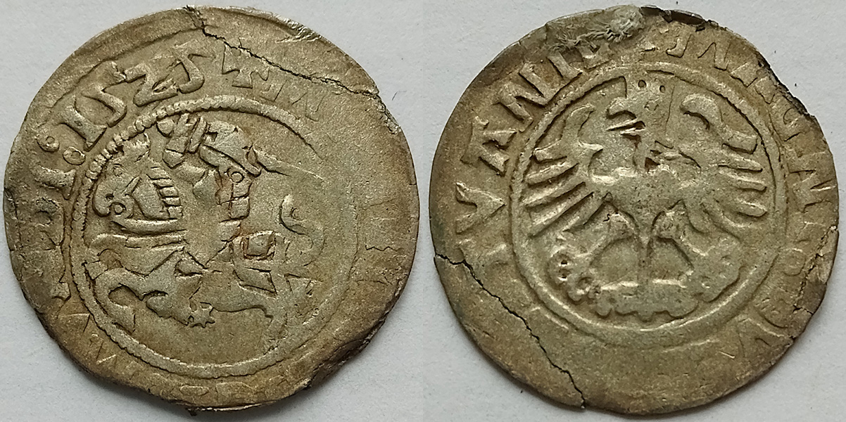 Lithuania. Polgrosz 1525. Zygmunt I Stary. Wilno. Kop. 3173 R2. Scarce year! Silver 0,78 g. Slightly broken by edge.