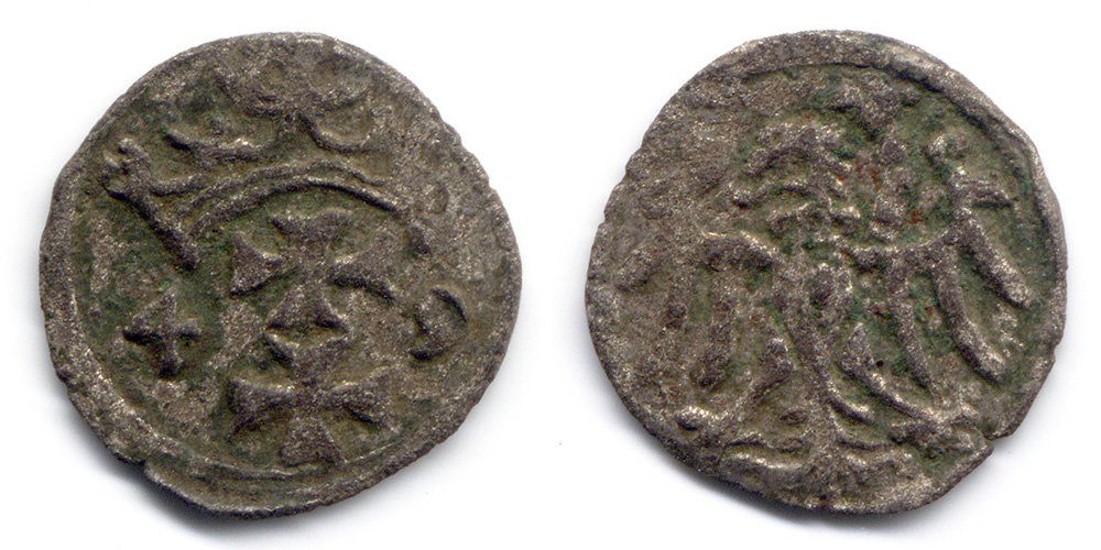 Poland. Denar 1549. Zygmunt II August. Gdansk. Kop. 7345 R4. Bil 0,31 g. Old patina.