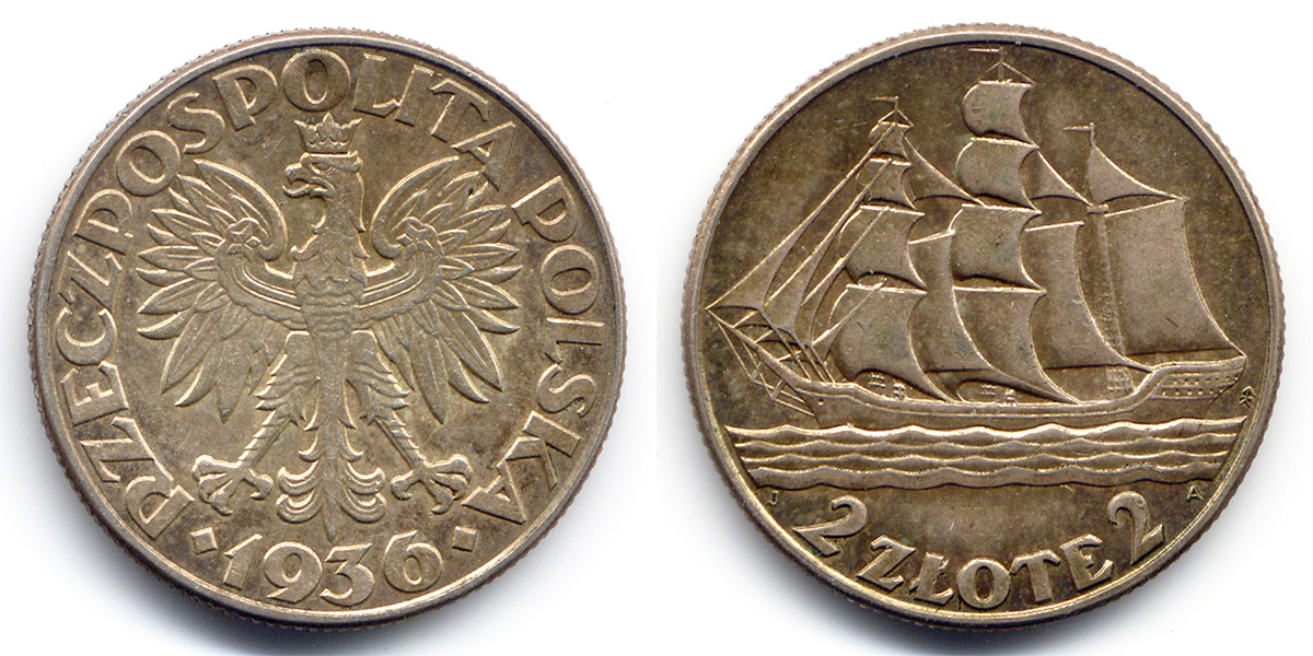 Poland. 2 zloty 1936 'Sailing ship'. Silver 4,35 g. Kopicki 2916. Minting luster with patina