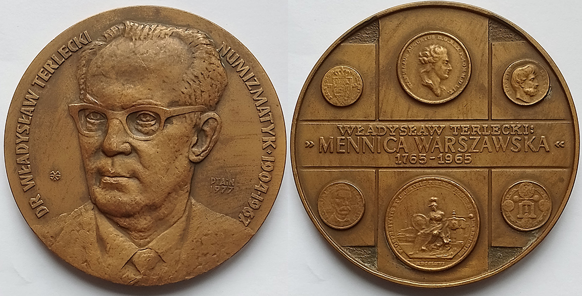 Poland. Medal 1978 Wladyslaw Terlecki (1904-1967) numismatist. PTAiN series Warsaw mint 200 anniversary. Designed by Edward Gorol. Tombac 175,4 g, 70 mm. Catalogue Paszkowycz 35/78
