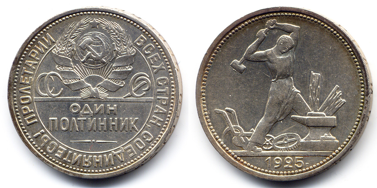 USSR. Poltinnik 1925 ПЛ, Petrograd mint. Silver 9,99 g. Minting luster