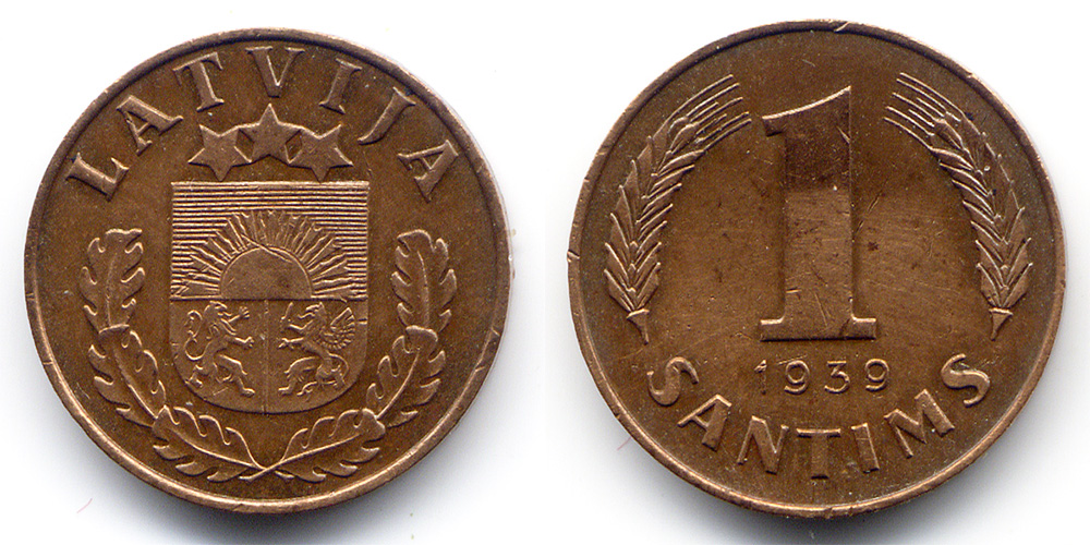 Latvia. 1 santims 1939. Bronze 1,83 g.